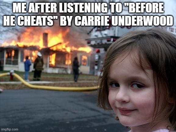 This song fires me up every time I hear it. Carrie Underwood rightfully so struck the fear of God into all unfaithful men for generations to come! Treat your woman right! Headlights are expensive in this economy. |